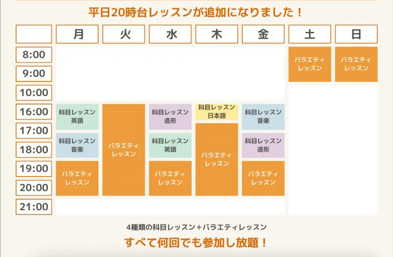 • 受けるレッスンは自分(親)が選ぶので計画的にやらないと受けそびれる