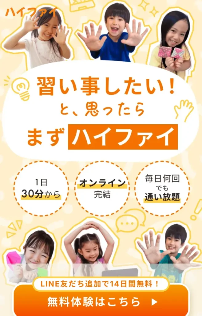 ハイファイは、「習い事を始めたいけどいろんな都合で難しい!」という家庭に最適なオンラインサービスです。